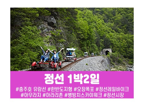 왕복열차비 ,충주호 유람선(편도), 정선레일바이크 1박4식 진행비