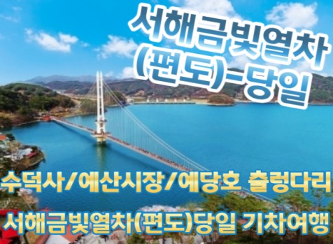 | | | 00:00 | ***이용상품은 아래 열차로 변경해서 진행 될 수 있습니다*** -용산역 08:28출발~예산 10:12도착(서해금빛열차) -상행열차 예산역 16:05출발~용산역 17:51도착(새마을호) | |